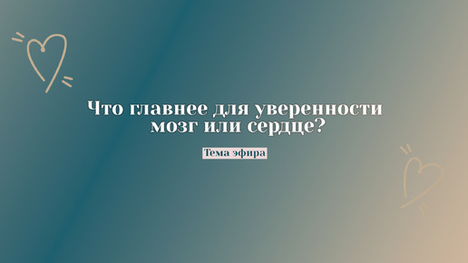 Что главнее для уверенности мозг или сердце? | Прямой Эфир