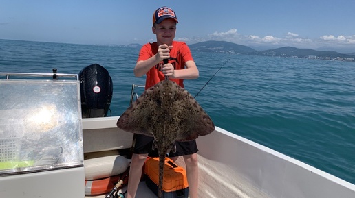 Трофейная рыбалка 20.06.2025 г. Это, что то невероятно. Парень тащит огромного ската.