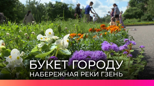 Добровольцы высадили цветы на клумбах набережной реки Гзень в Великом Новгороде