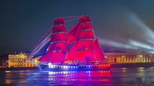 Алые паруса сквозь объектив нейросети | HailuoAI: Петербург в сиянии мечты