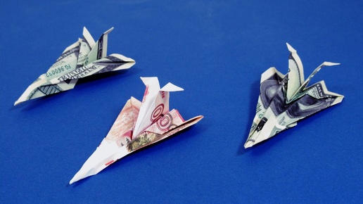 Как сделать самолетик из купюры Оригами из денег Манигами истребитель