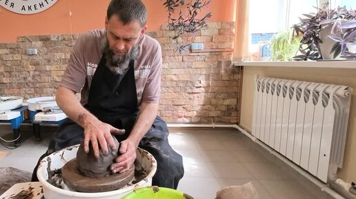 Легендарный гончар работает с шамотной глиной.