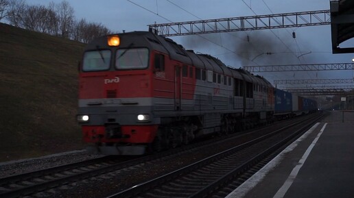 Тепловоз 2ТЭ116У-0069 с контейнерным составом.