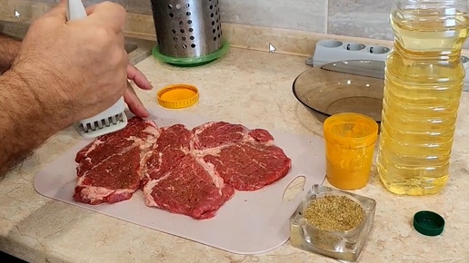 Нежнейший шницель из говяжьей шеи и оладьи из тыквы с творогом