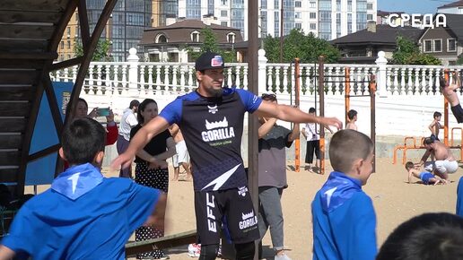 Зарядка с чемпионом прошла в Каспийске в рамках празднования Дня молодежи