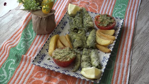 Сардины в заправке чесночнок петрушка и сухарики в духовке с помидорами. Sardinas en horno.