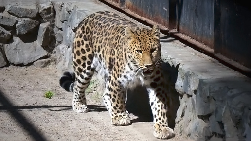 Леопард - один из красивейших хищников из семейства кошачьих и Хлоя, которая гуляет в своем вольере.