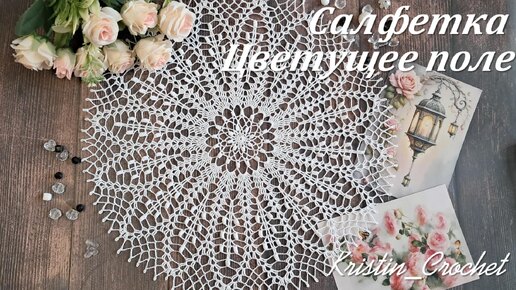 МК Ажурная салфетка. Цветущее поле. Часть #2 (13 - 23 ряд)