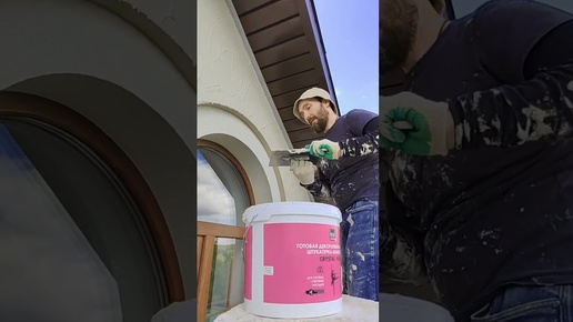 Декоративная штукатурка в трудном месте, в треугольник, наносится и затирается куском экструдированного пенопласта, шпатель из ЭППС