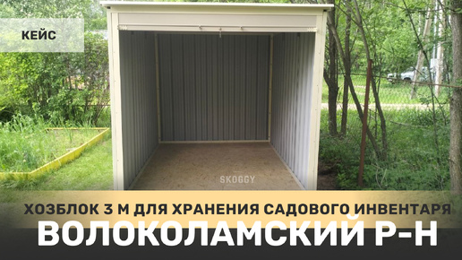 Металлический окрашенный хозблок SKOGGY с рольставнями для инвентаря и техники в селе Калеево, Волоколамский район