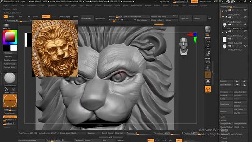 ZBRUSH BASE RELIEF WORK (LION FACE) for jewellery