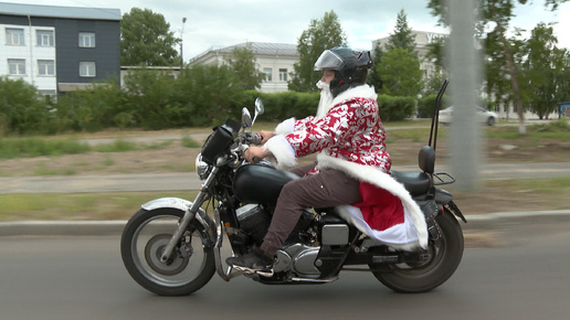 Грузовик снега и Дед Мороз на мотоцикле. В Усолье-Сибирском отметили Байкерский новый год