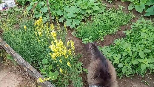 В огороде после дождей беспорядок- Травы много. Мы с Масиком делаем обход. Зато, появился вот этот Жёлтый цветок. Похоже, это Львиный Зев.