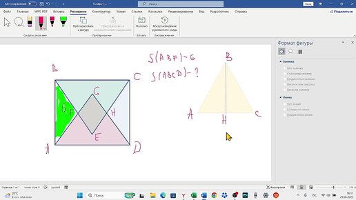 Найти площадь квадрата, по площади треугольника.