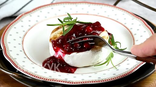 Горячай закуска для романтического ужина. Сыр Камамбер с пряным брусничным соусом.