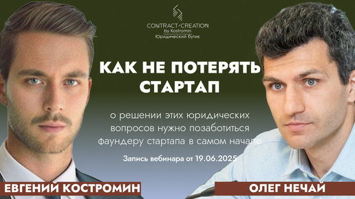 КАК НЕ ПОТЕРЯТЬ СТАРТАП | МНЕНИЕ ЮРИСТА | Евгений Костромин. Олег Нечай. Вебинар 19.06.2025