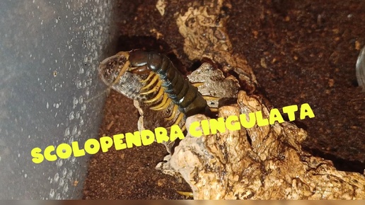 Кольчатая сколопендра (Scolopendra cingulata) нападает и поедает свою жертву.
