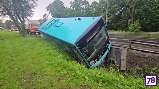 Автобус прилёг в кювет на Ораниенбаумском шоссе