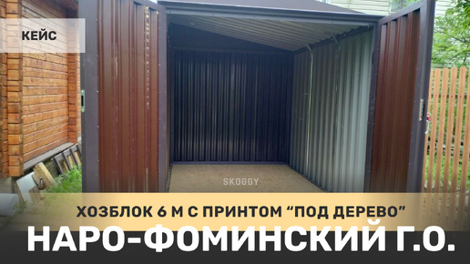 Стальной разборный хозблок SKOGGY в расцветке под дерево с внутренней перегородкой на сваях в деревне Зинаевка, Наро-Фоминский г.о.