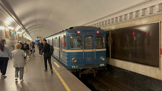 "Смешной пассажир!" Метропоезд Ем-501/Ема-502 №122 на ст.м.Владимирская, июнь 2025 года