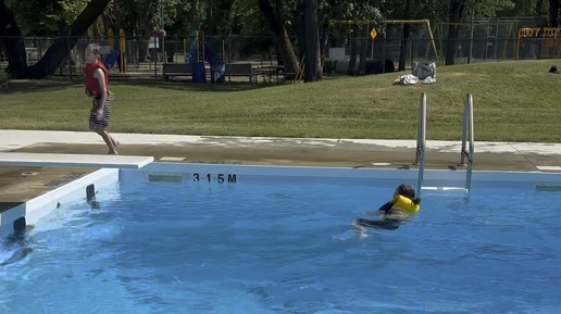 3,15 м глубна. Тим и Эля в бассейне
