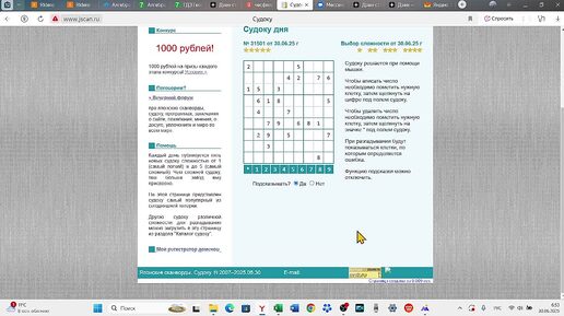 Судоку дня (5*) от 30.06.25 из сайта jscan.ru