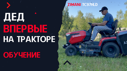 Дед ВПЕРВЫЕ пробует косить САДОВЫМ ТРАКТОРОМ. Обучение по запуску. ZimAni TC97HLD