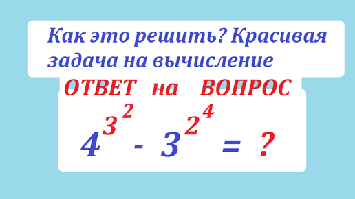 Спорная алгебраическая задача с числами. Вычислите "этажерки степеней" 4^(3²) - 3^(2⁴)