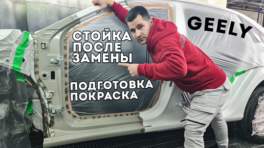 Geely - подготовка под покраску стойки с частью порога после замены.