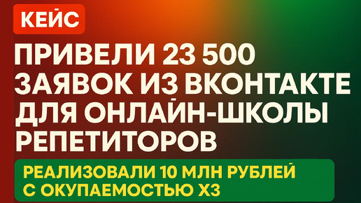Кейс. Реализовали 10 млн и привели 23500 лидов из ВК для онлайн-школы репетиторов с окупаемостью х3