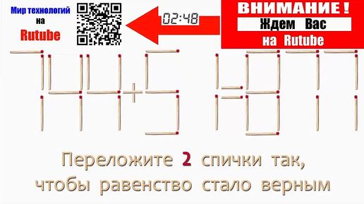 Задача со спичками 542. Переложите 2 спички так, чтобы равенство стало верным (744+51=877).