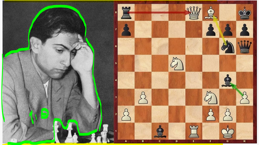 Михаил Таль делает красивую игру белыми, умело оперируя своими фигурами против сицилианской защиты Иствана билека (Амстердам, 64, 1-0)