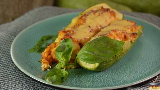 Эффектные лодочки. Кабачки с яйцами и ветчиной
