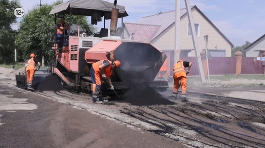 Свежий асфальт укладывают дорожные рабочие на Раковской