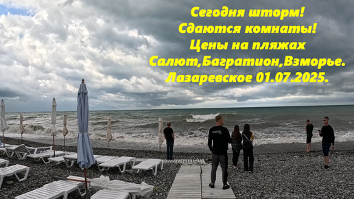 Сегодня шторм! Сдаются комнаты -пишите звоните! Цены на пляжах Салют, Взморье, Багратион! Лазаревское 01.07.2025.