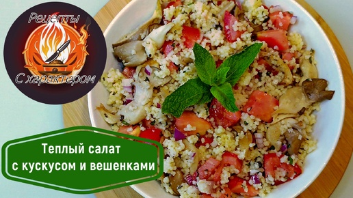 ЛЁГКИЙ и ПОЛЕЗНЫЙ тёплый салат за 15 МИНУТ.Кускус с вешенками и свежими овощами.ПП рецепт салата.