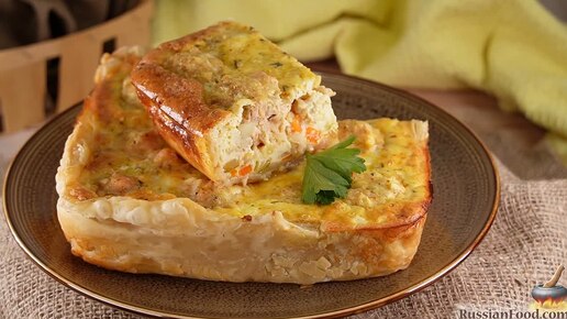 Мясное блюдо в корзинке из слоёного теста. Пирог с фрикадельками и кабачками