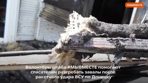 Волонтёры #МЫВМЕСТЕ в Донецке помогают ликвидировать последствия ракетного удара ВСУ.