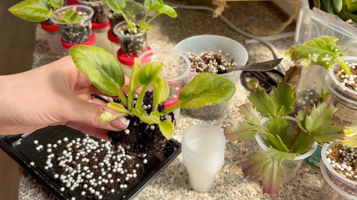 Промежуточная пересадка деток фиалок • посадка фиалок в горшочки и зип-пакеты