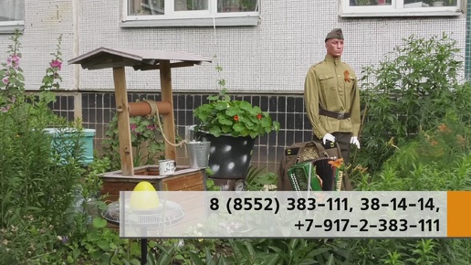 Рядом с подъездом не только шикарные цветы, но и композиция в честь 80-летия Великой Победы