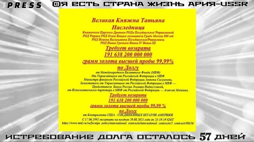 ИСТРЕБОВАНИЕ ДОЛГА Осталось 57 дней