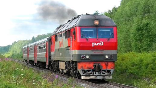 "Теплоэлектричка". ТЭП70БС-089 с пригородным поездом Великая — Киров-Пасс.