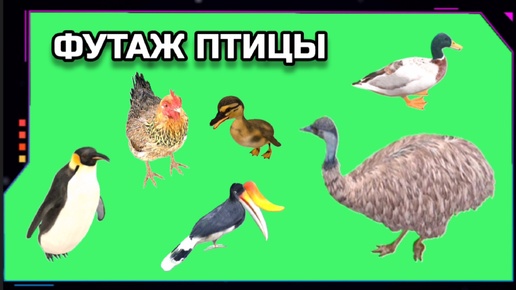 ПТИЦЫ видео GREEN SCREEN футаж. ХРОМАКЕЙ АНИМАЦИЯ ПИНГВИН, УТКА, КУРИЦА, ПТИЦА НОСОРОГ, ЭМУ, УТЁНОК на зелёном экране.