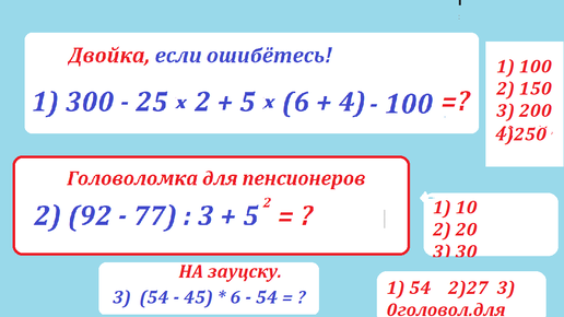 Числовые головоломки для пенсионеров и не только. Выберите один верный ответ