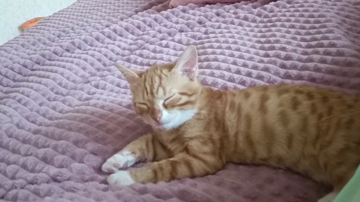 Котёнок Марсик мурлычет и засыпает.