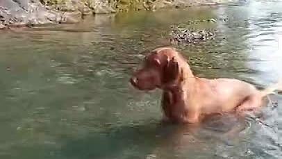 Венгерская короткошёрстная легавая , ВЫЖЛА , ныряет на реке.