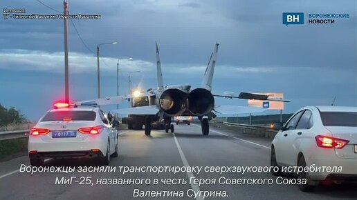 Транспортировку носящего имя Героя Советского Союза самолета МиГ-25 запечатлели воронежцы