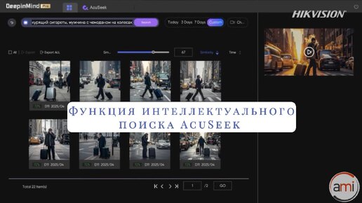 Пример работы функции интеллектуального поиска AcuSeek от Hikvision