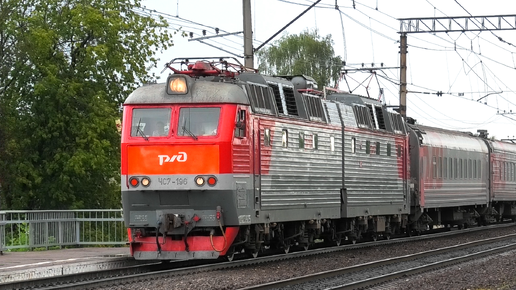 ЧС7-196 со скорым поездом Абакан — Москва с приветливой бригадой следует через станцию Которосль