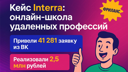 Кейс ВК. Реализовали 2.5 млн и привели 41 281 лидов для Interra, онлайн-школы удаленных профессий